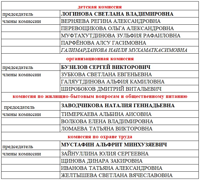 Состав комиссий Профкома